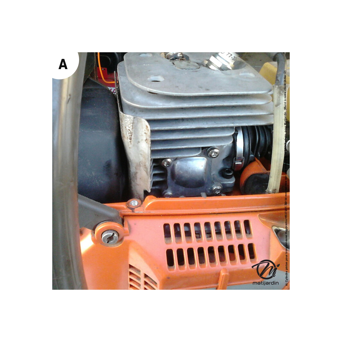 A/ Cylindre piston pour tronçonneuse Husqvarna HS372XT. Ø 50 mm montée sur une tronçnneuse 372XP photo pour Matijardin. (Merci à notre client Didier D)