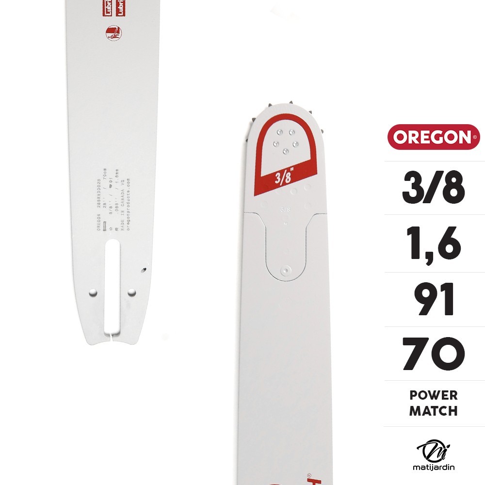 Guide tronçonneuse Oregon 70 cm. 3/8" 1,6 mm 91 maillons 283RNDD025 Power Match