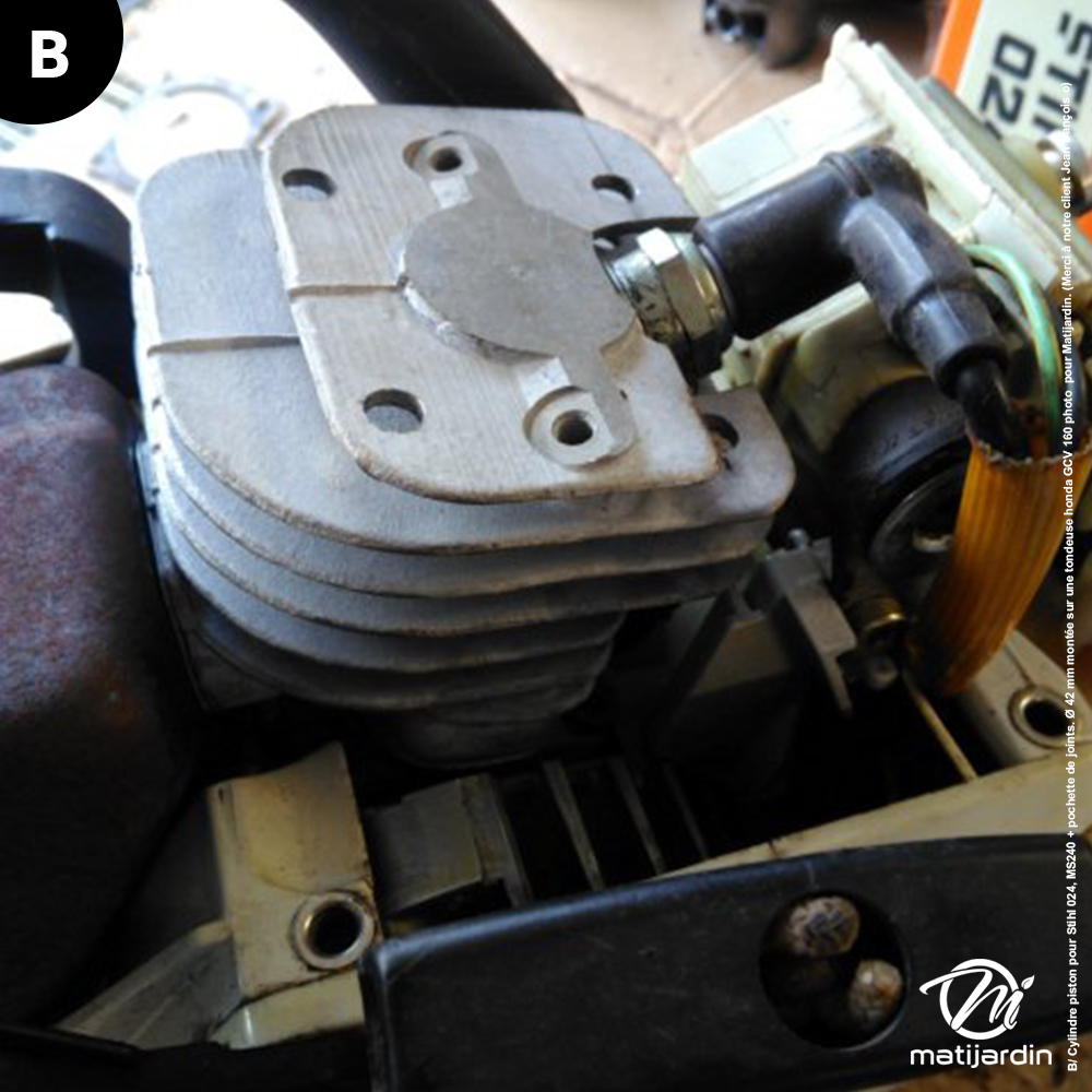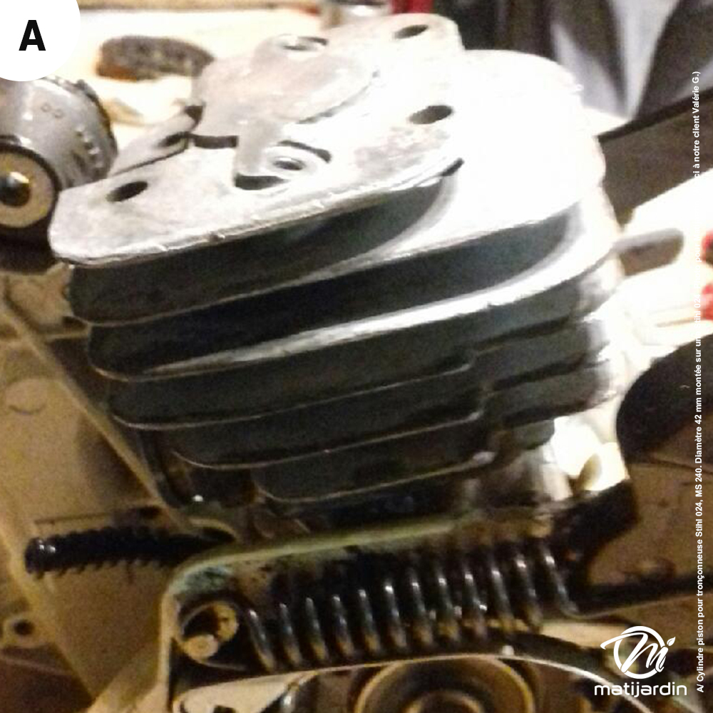 A/ Cylindre piston pour tronçonneuse Stihl 024, MS 240. Diamètre 42 mm montée sur une Stihl 024 Photo pour Matijardin. (Merci à notre client Valérie G.)