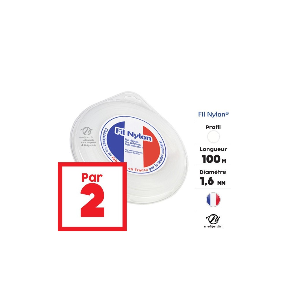 2 blisters fil débroussailleuse Rond 1,6 mm x 100 m Fil Nylon