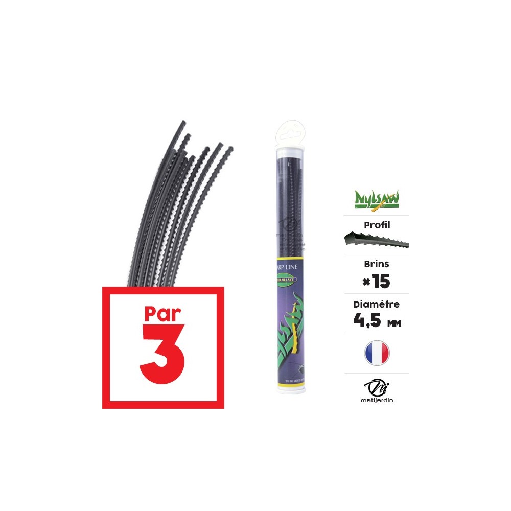 3 tubes fil débroussailleuse Cranté 4,5 mm 15 brins Nylsaw