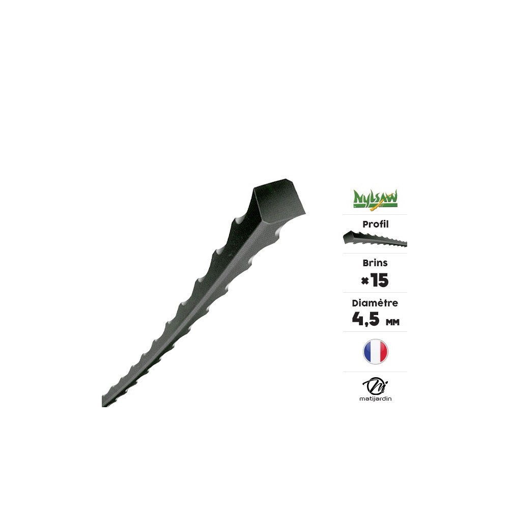 - Le profil cranté assure une accroche maximale sur les tiges fibreuses et les ronces, évitant que le fil ne glisse sur la végétation sans la couper.