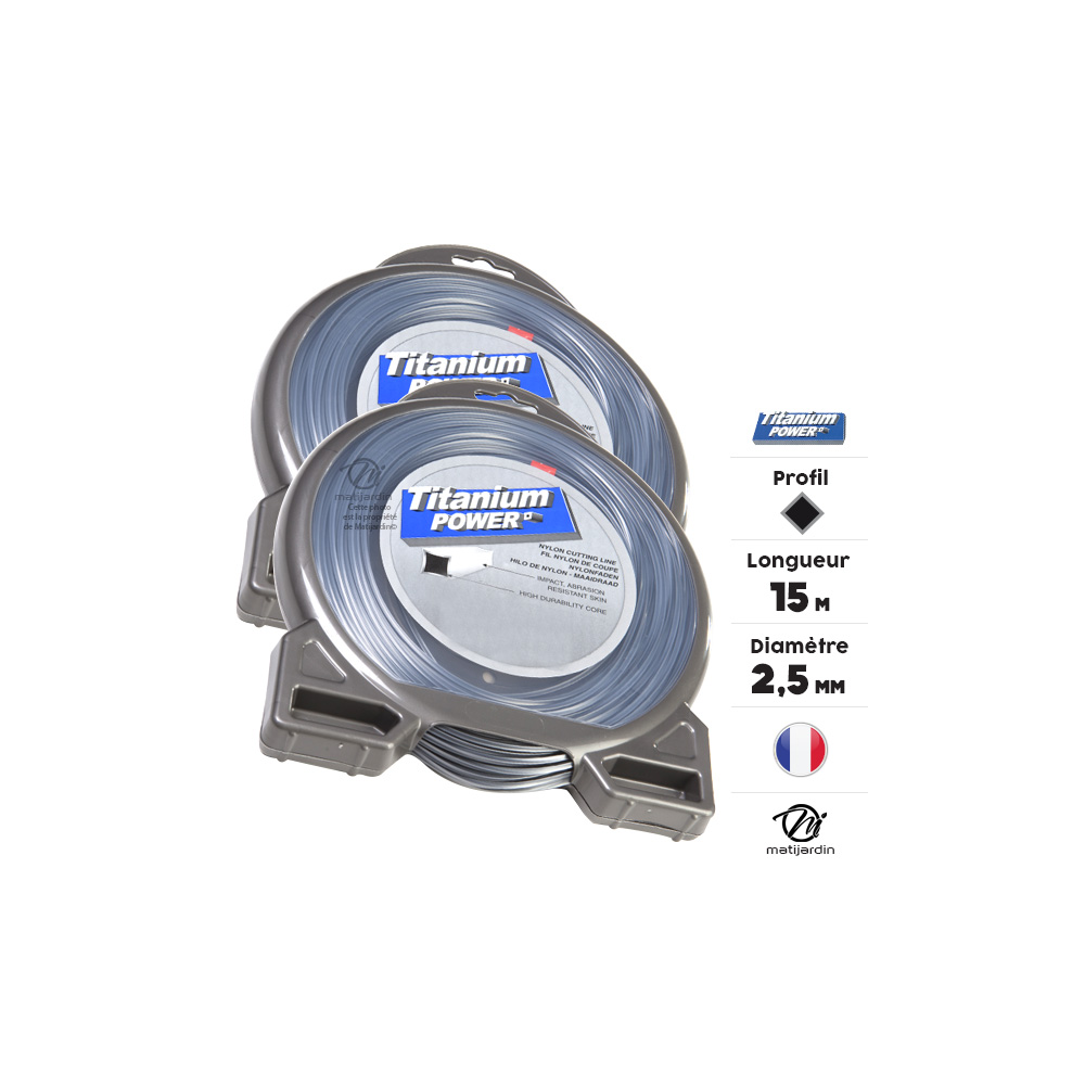 2 blisters fil débroussailleuse Carré 2,5 mm x 15 m Titanium Power