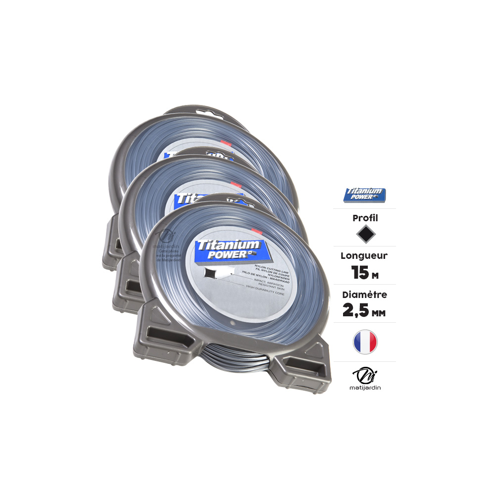 3 blisters fil débroussailleuse Carré 2,5 mm x 15 m Titanium Power