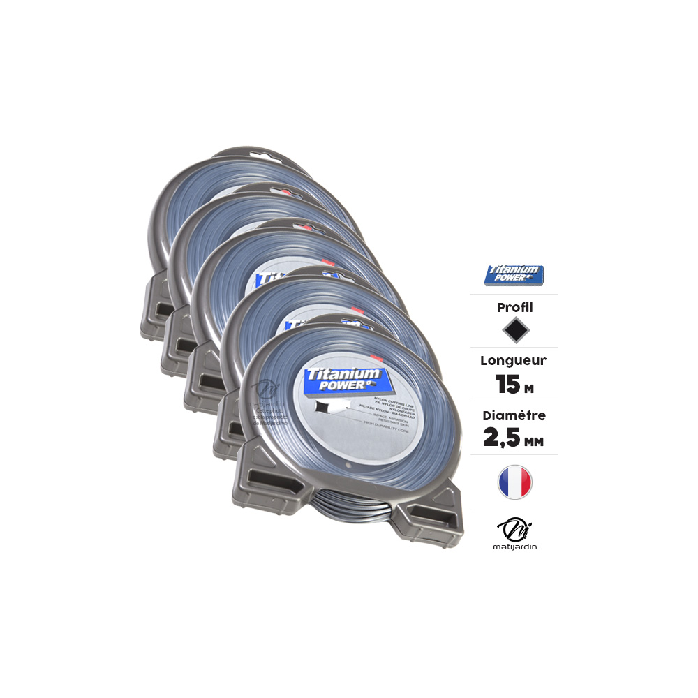 5 blisters fil débroussailleuse Carré 2,5 mm x 15 m Titanium Power