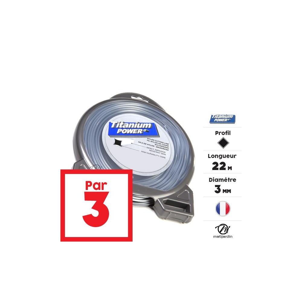 3 blisters fil débroussailleuse Carré 3 mm x 22 m Titanium Power