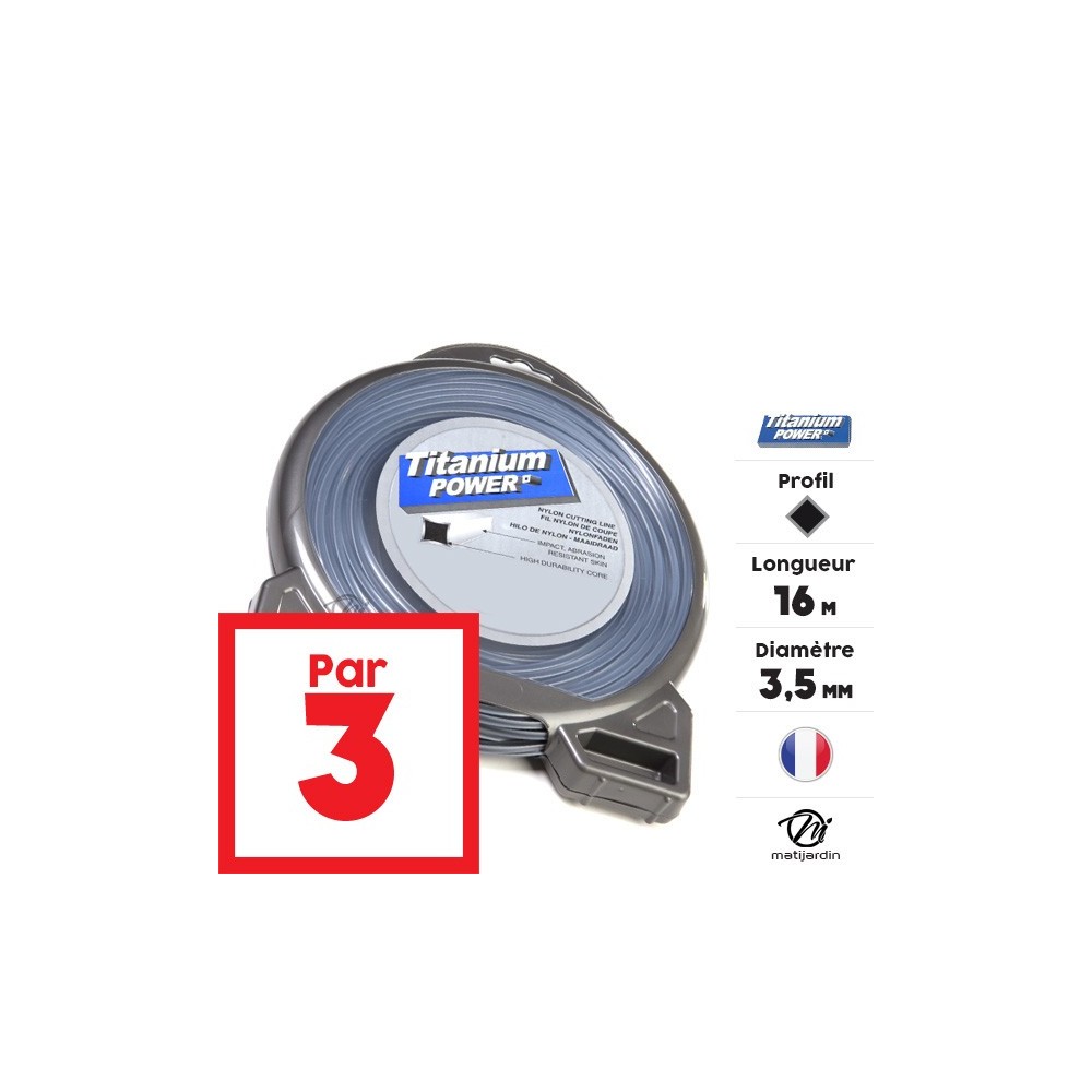3 blisters fil débroussailleuse Carré 3,5 mm x 16 m Titanium Power