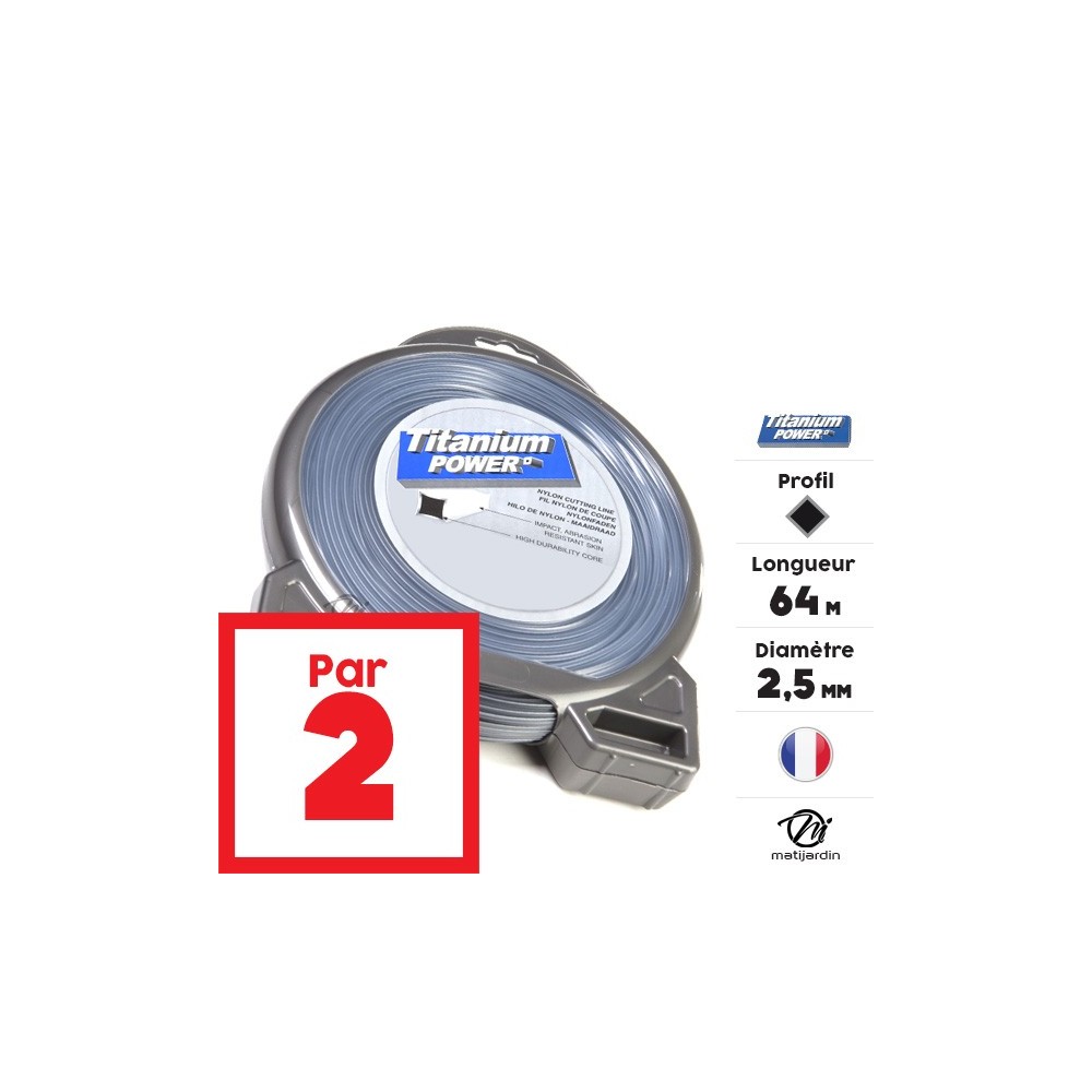 2 blisters fil débroussailleuse Carré 2,5 mm x 64 m Titanium Power