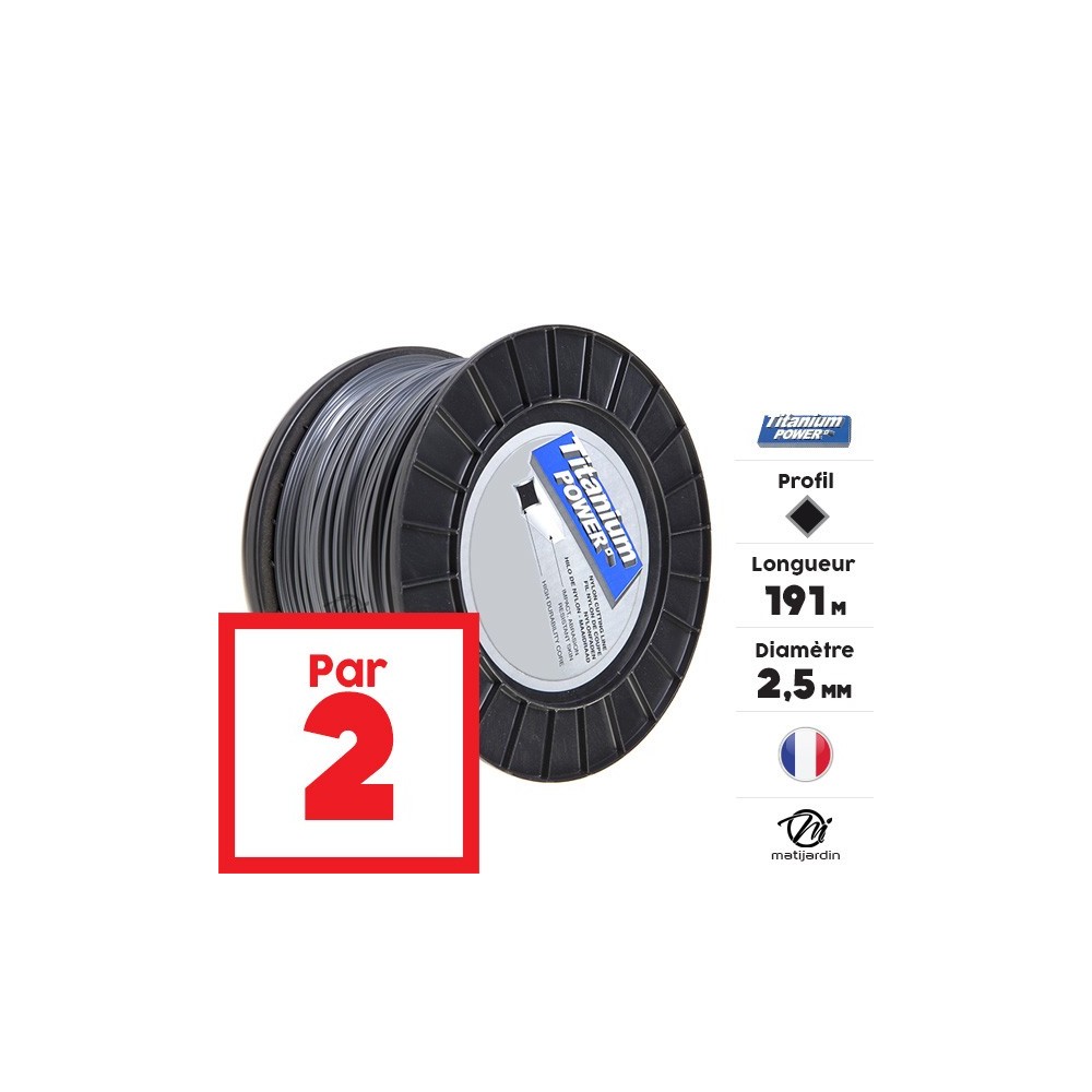 2 bobines fil débroussailleuse Carré 2,5 mm x 191 m Titanium Power