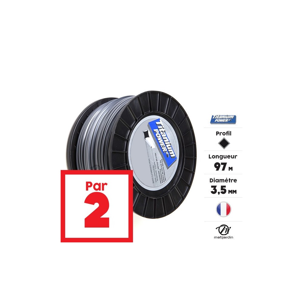 2 bobines fil débroussailleuse Carré 3,5 mm x 97 m Titanium Power