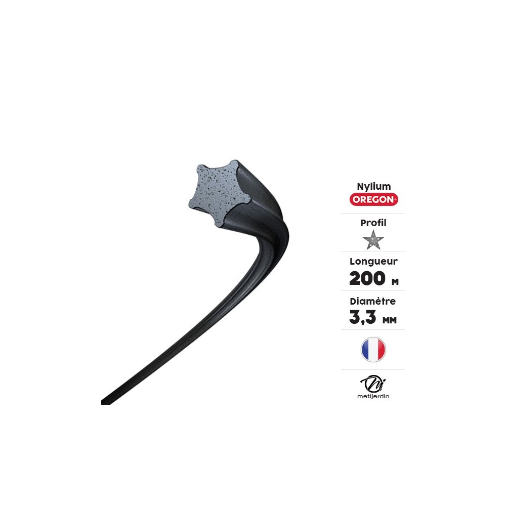 Le fil débroussailleuse Etoilé 3,3 mm x 200 m Oregon Nylium assure une performance élevée sur les broussailles et les herbes très épaisses. Sa section étoilée favorise une coupe propre et puissante.