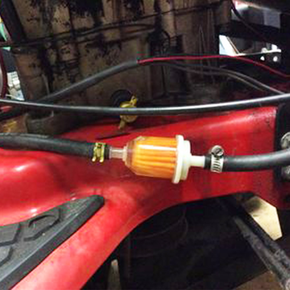 Filtre à essence de grand modèle pour autoportée avec une double sorties Ø 6,5 et 8 mm (raccord)