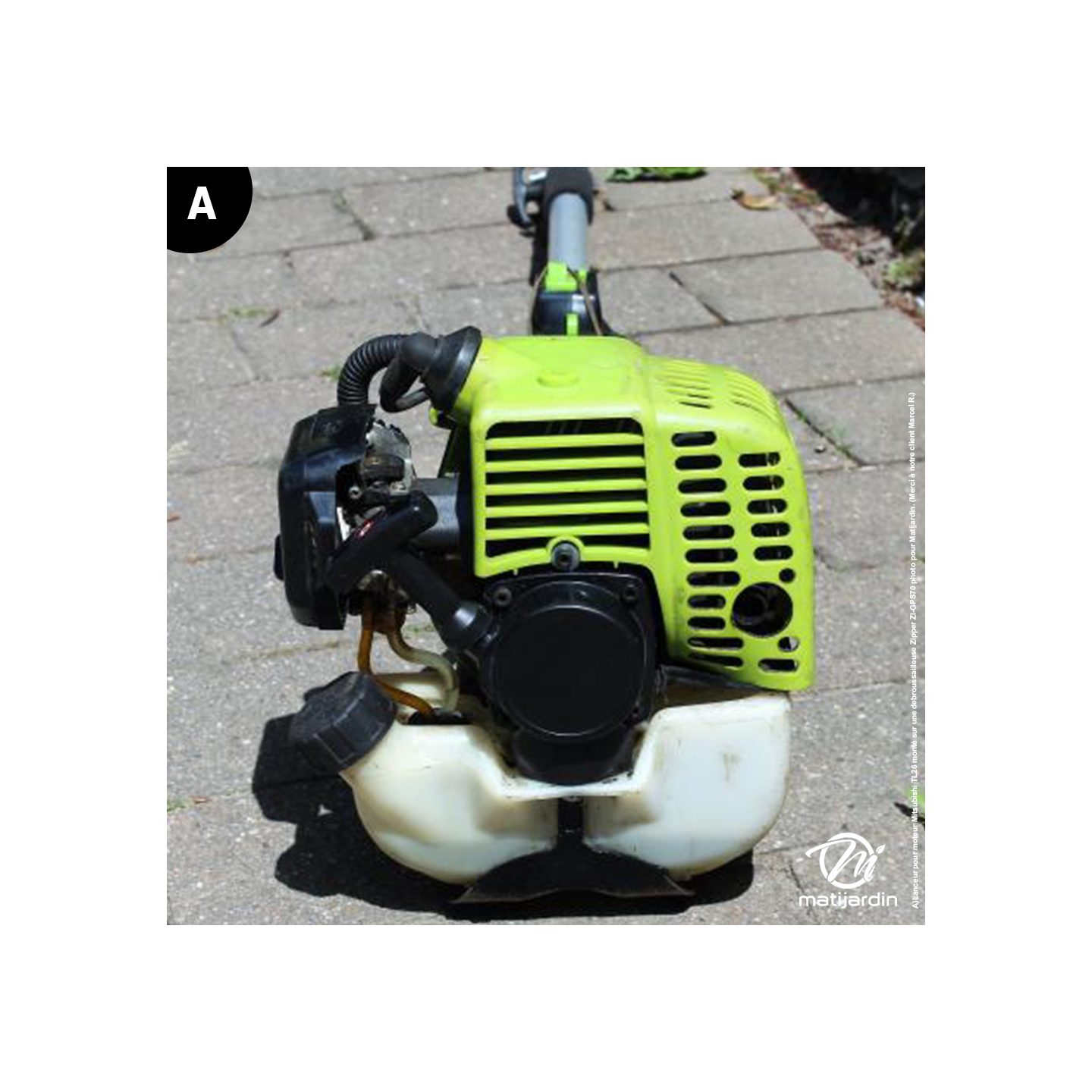 A) Lanceur pour moteur Mitsubishi TL26 monté sur une débroussailleuse Zipper ZI-GPS70 photo pour Matijardin. (Merci à notre client Marcel R.)