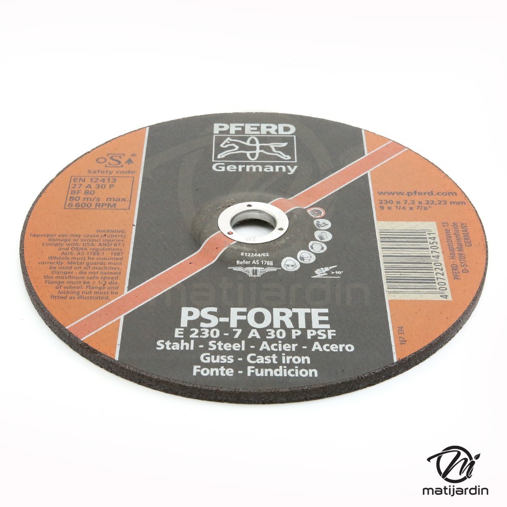 Disques à ébarber des matériaux Pferd. Ø 230 mm. Al 22,2 mm. Ep 6 mm