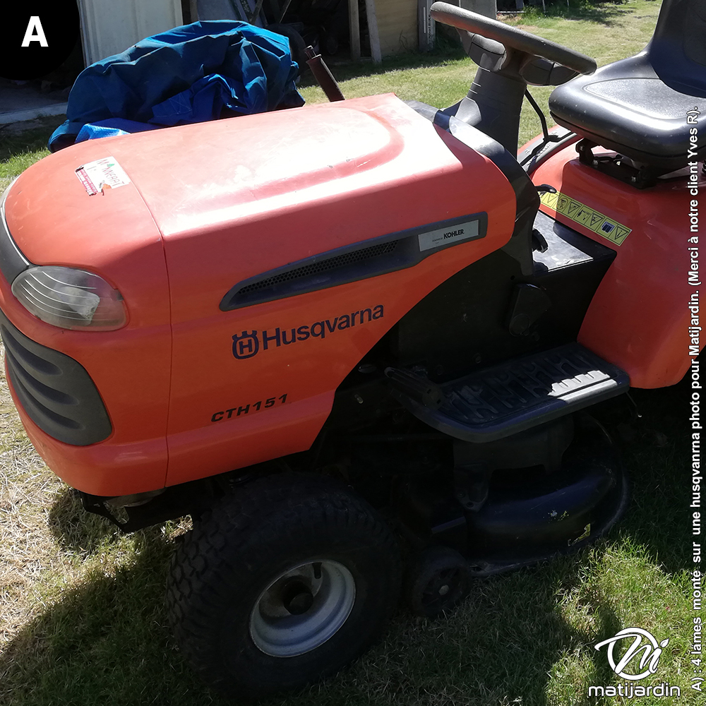 A) : 1 lames référence MATAA23103+MATAA24120+MATAA23105+MATAA23104 monté sur une husqvanrna CTH151 photo pour Matijardin. (Merci à notre client Yves R).