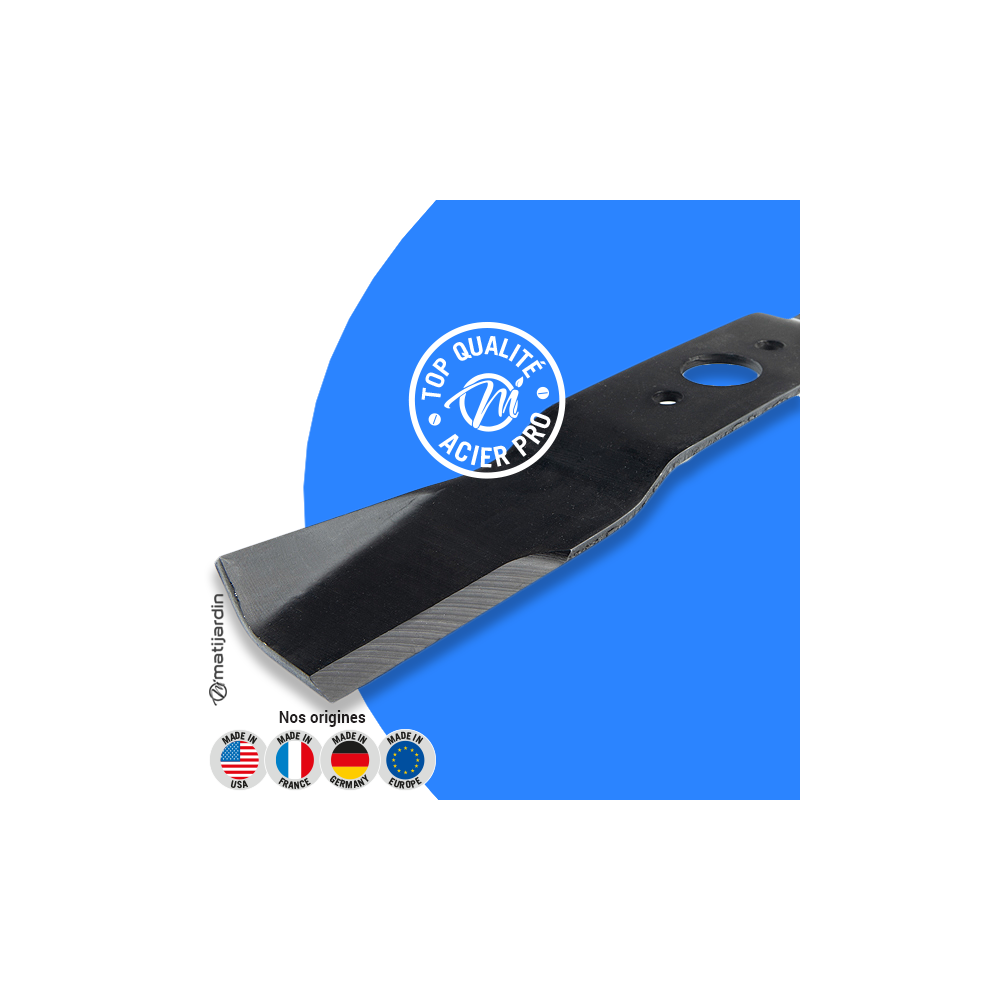 Astuce remontage. Au remontage, attention au sens de montage de la lame ! Pour la plupart des modèles de tondeuse, le côté plat du tranchant de la lame (illustration 2) doit se retrouver côté pelouse. Soyez vigilant, la partie coupante de votre lame peut vite vous envoyer aux urgences ! Matijardin vous conseille d’utiliser des gants.