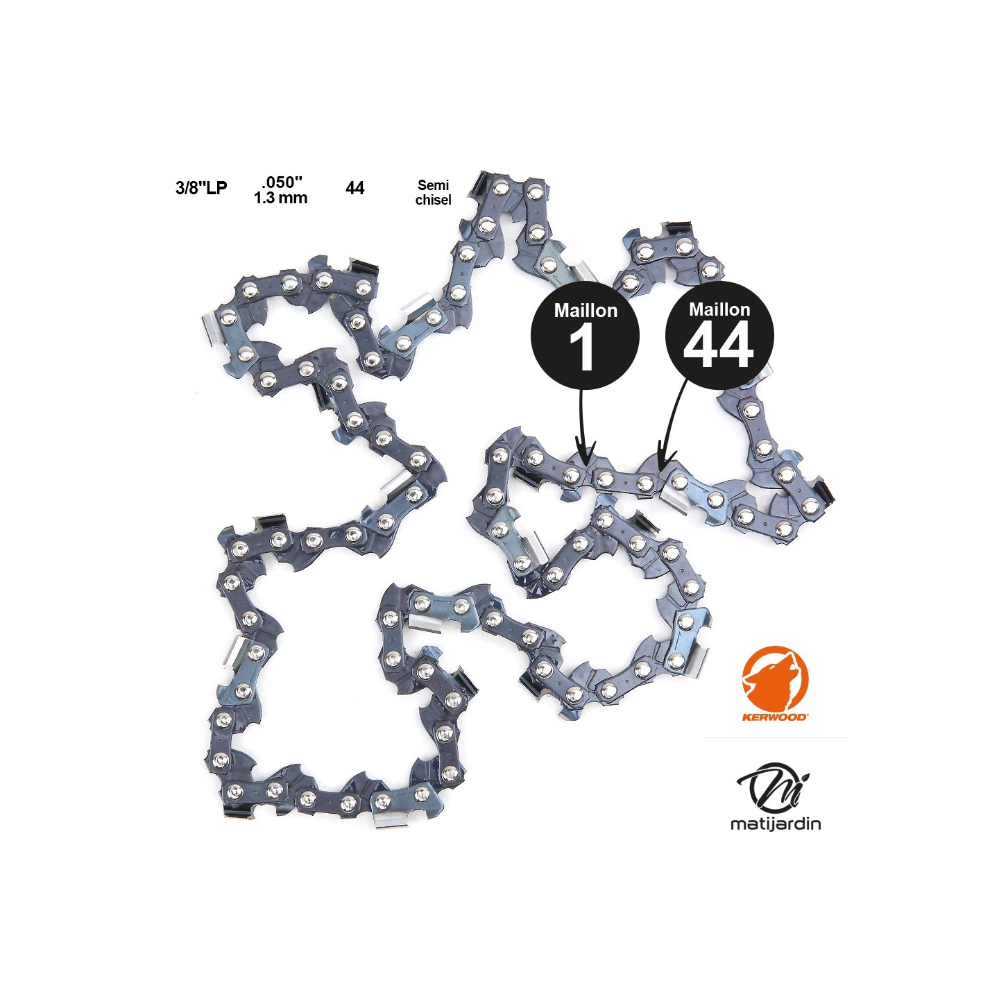 Chaine Kerwood pour MCCULLOCH EMAC1040 3/8"LP 1,3 mm 44 maillons