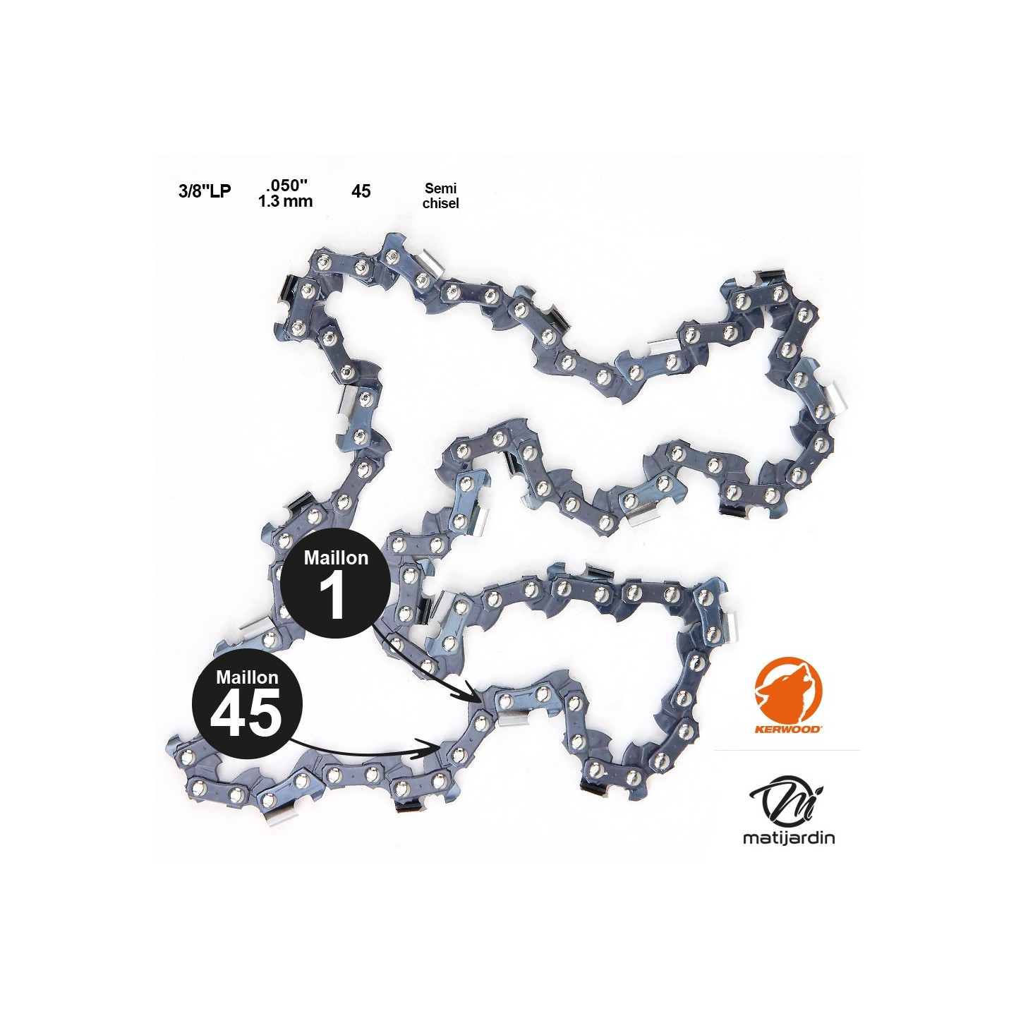 Chaine pour ECHO CS-270WES 3/8"LP 1,3 mm 45 maillons. Kerwood