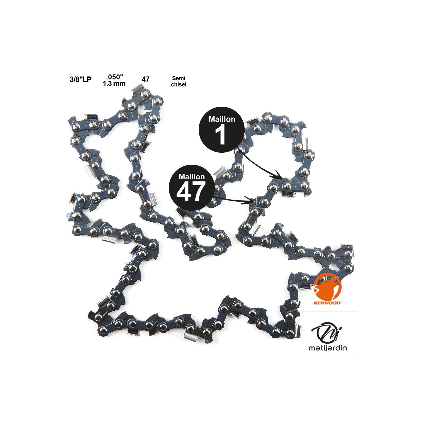 Il existe plusieurs types de chaînes pour la référence de votre tronçonneuse. Ceci est en fonction de la longueur de votre guide. Avant l'achat sur notre espace Matijardin, vérifiez bien le nombre de maillons de votre ancienne chaîne. Comptez bien le nombre de maillons de votre nouvelle chaîne.
