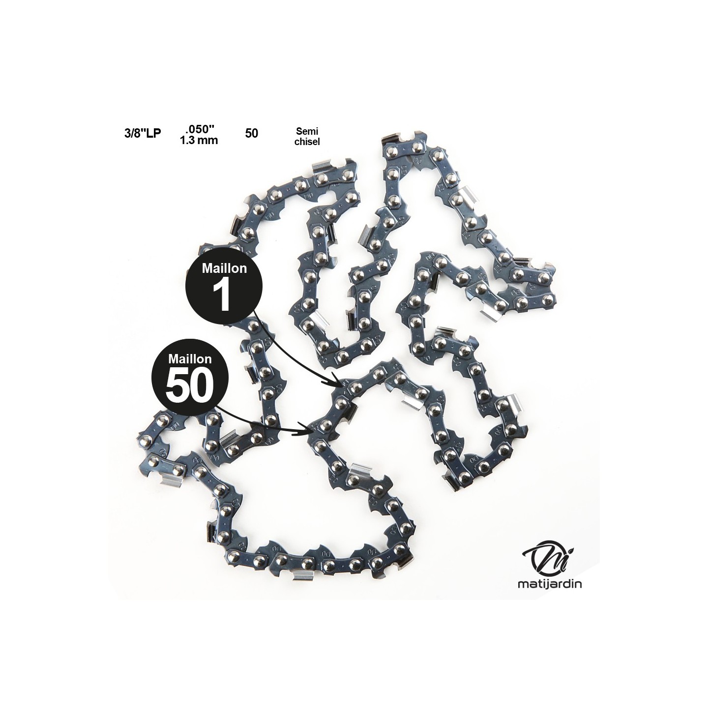 Il existe plusieurs types de chaînes pour la référence de votre tronçonneuse. Ceci est en fonction de la longueur de votre guide. Avant l'achat sur notre espace Matijardin, vérifiez bien le nombre de maillons de votre ancienne chaîne. Comptez bien le nombre de maillons de votre nouvelle chaîne.