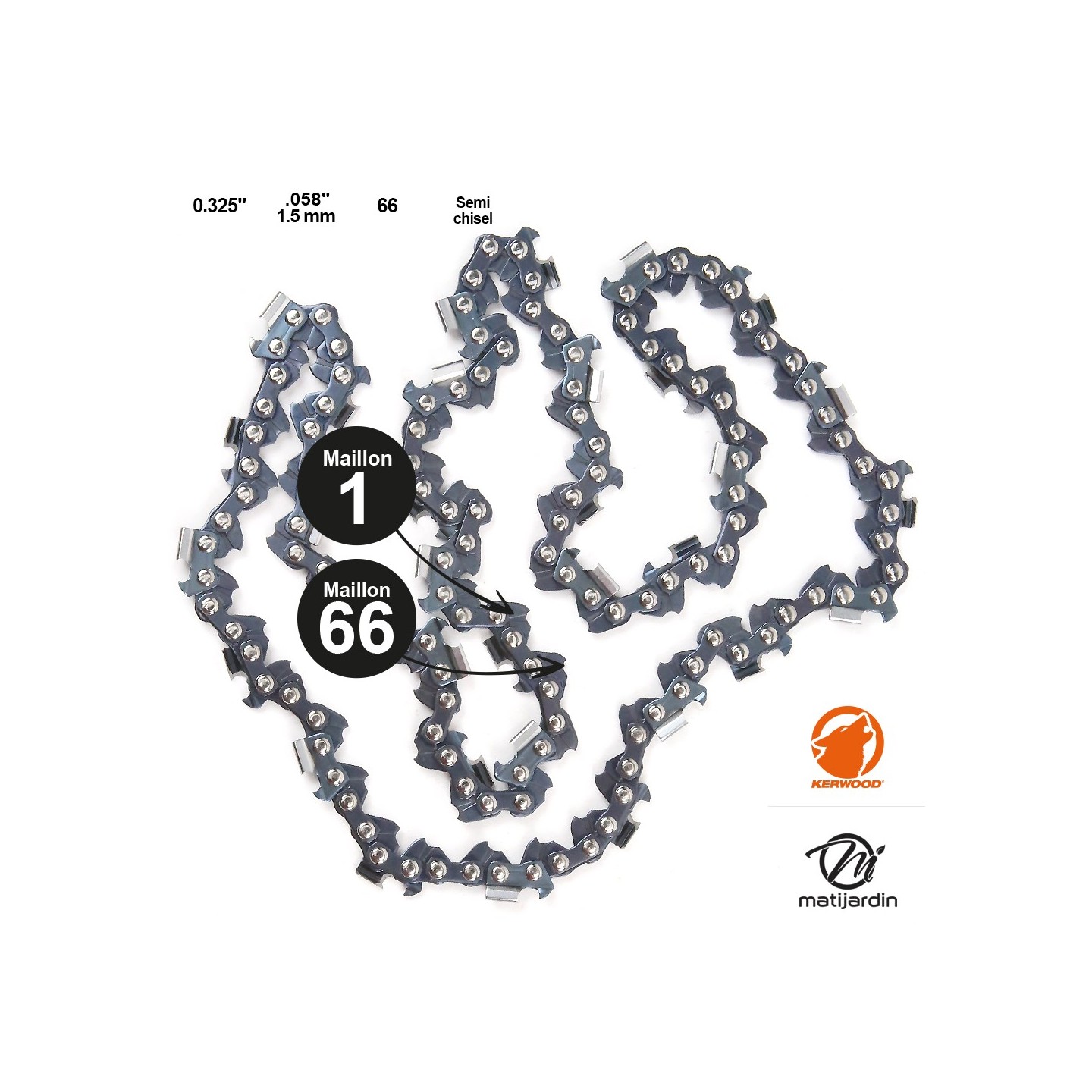 Chaine Kerwood pour JONSERED 52 0,325 1,5 mm 66 maillons