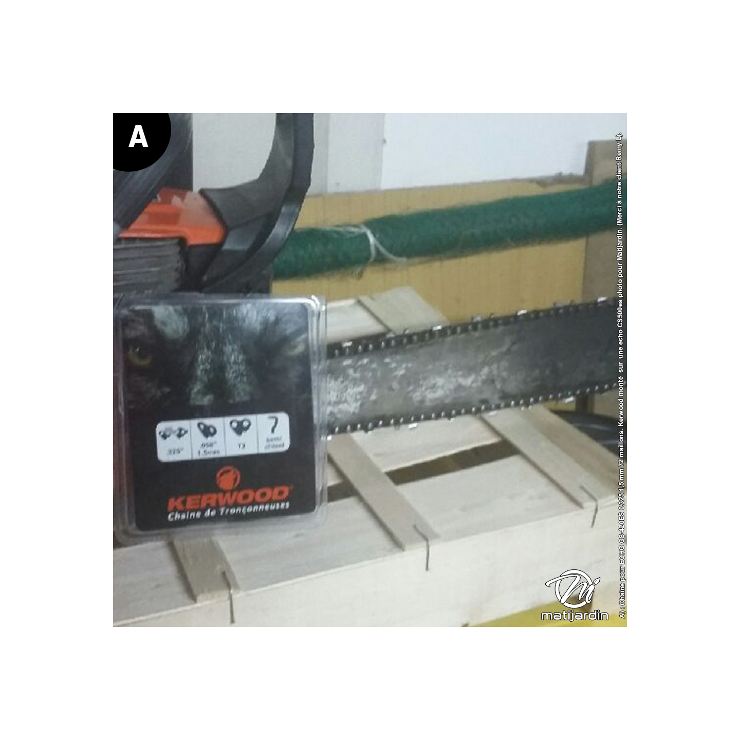 A) : Chaine pour ECHO CS-420ES 0,325 1,5 mm 72 maillons. Kerwood monté sur une echo CS500es photo pour Matijardin. (Merci à notre client Remy L).