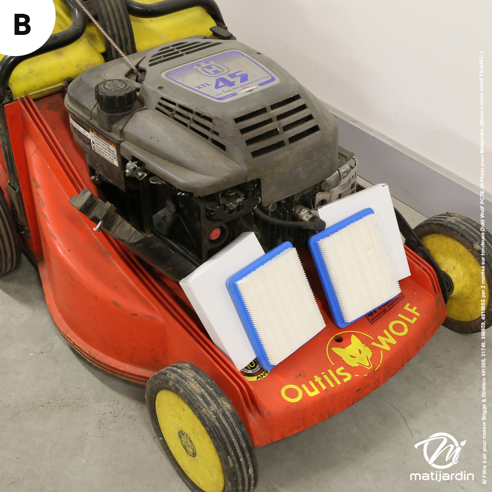 B/ Filtre à air pour moteur Briggs & Stratton 491588, 31749, 399959, 491588S par 2 monté sur tondeuse Outil WolF PCTE 46 Photo pour Matijardin. (Merci à notre client Tibault C.)