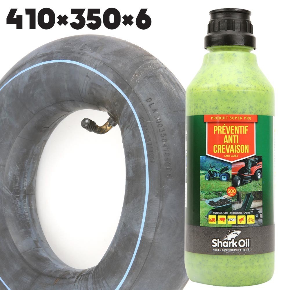 Chambre à air 410 x 350 x 6 coudée + Anticrevaison SharkOil OKO 500 ml