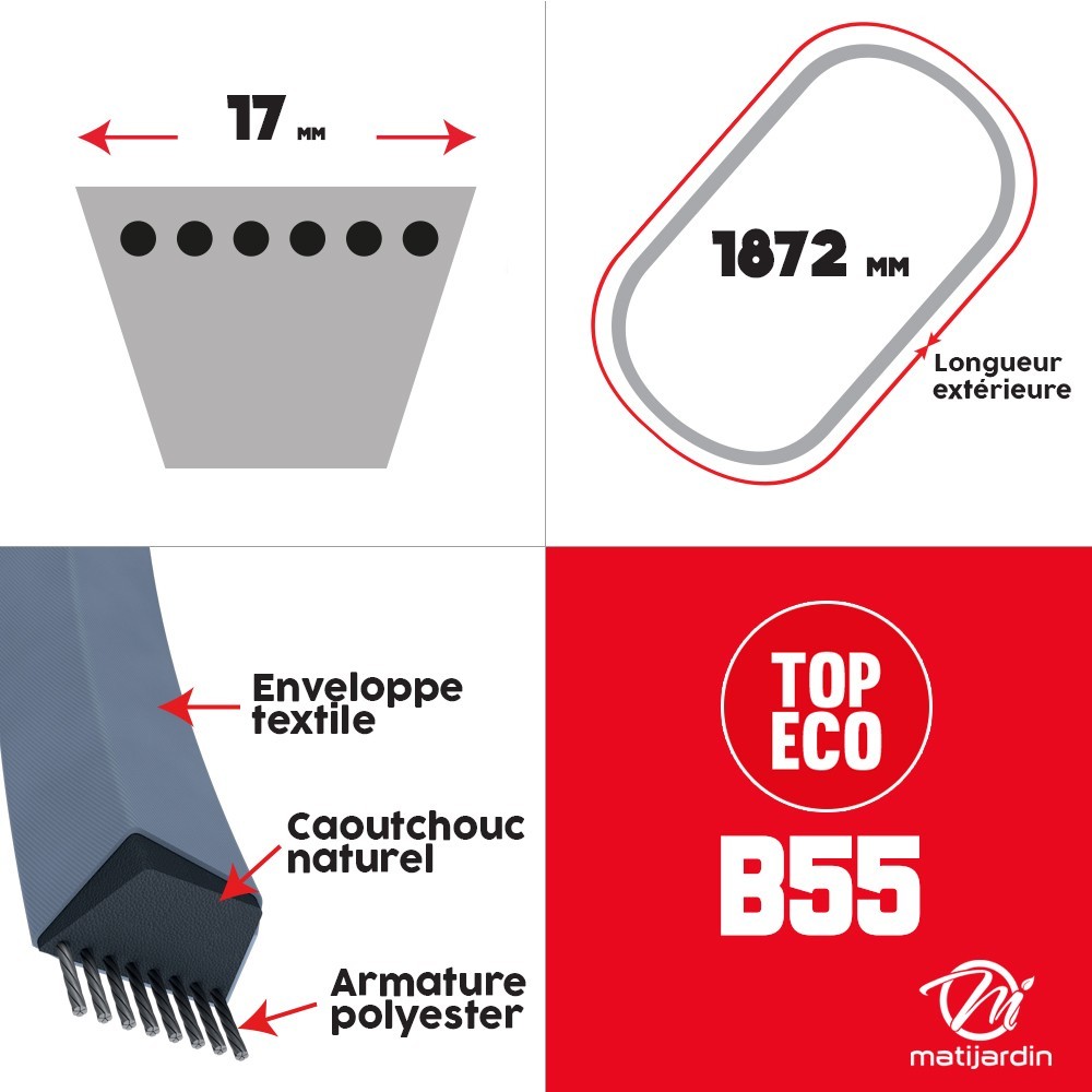 Courroie tondeuse B55 prix éco, Trapézoïdale, 17 mm x 1466 mm