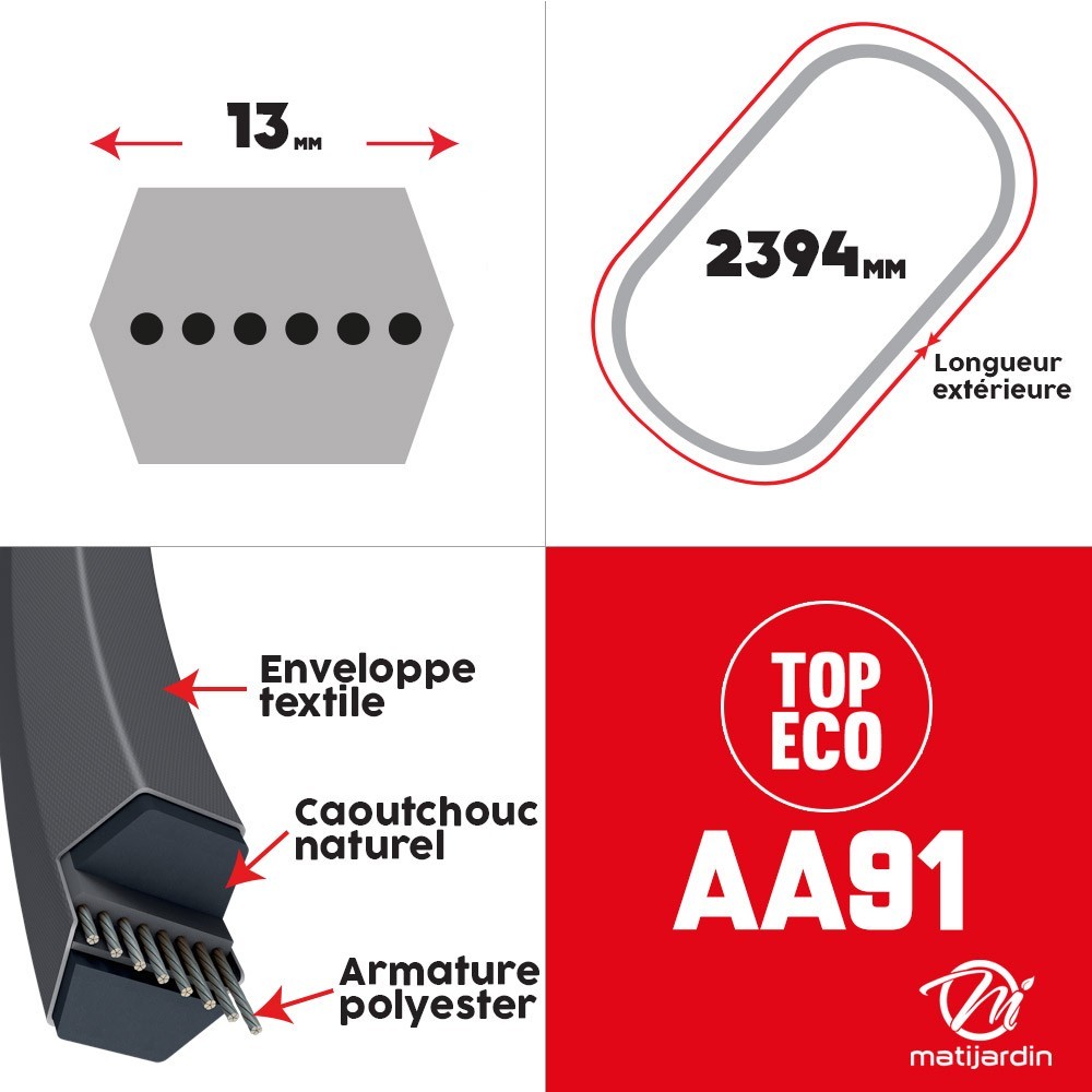 Courroie tondeuse AA91 prix éco Héxagonale - 13 mm x 2394 mm