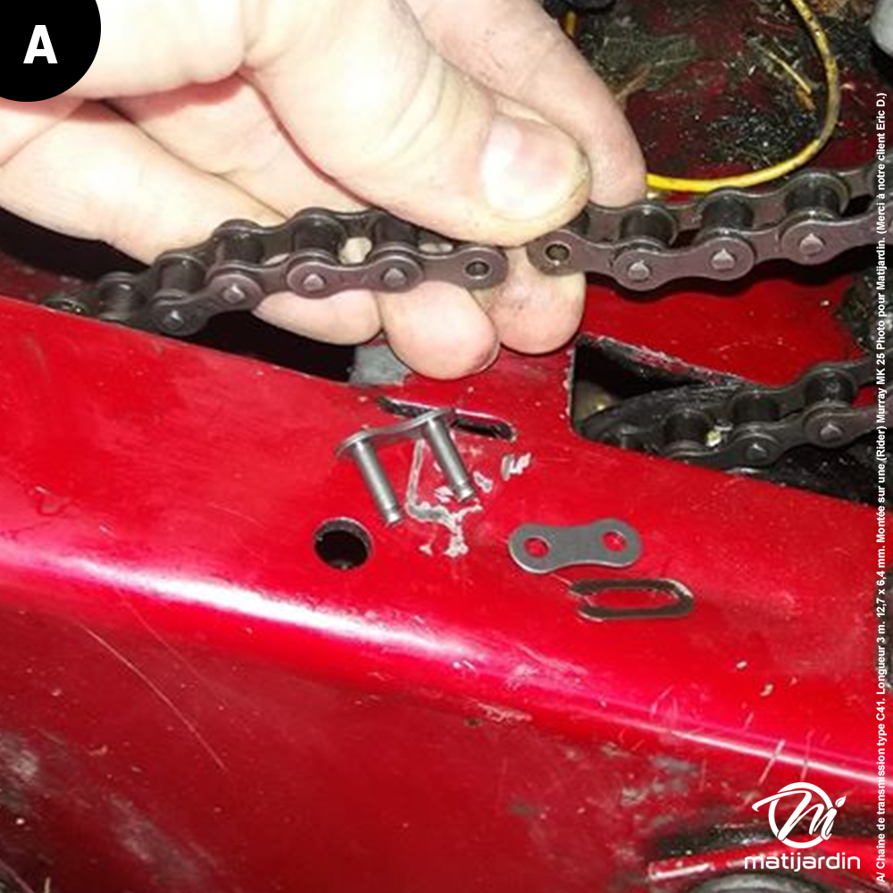 A/ Chaîne de transmission type C41. Longueur 3 m. 12,7 x 6,4 mm. Montée sur une (Rider) Murray MK 25 Photo pour Matijardin. (Merci à notre client Eric D.)