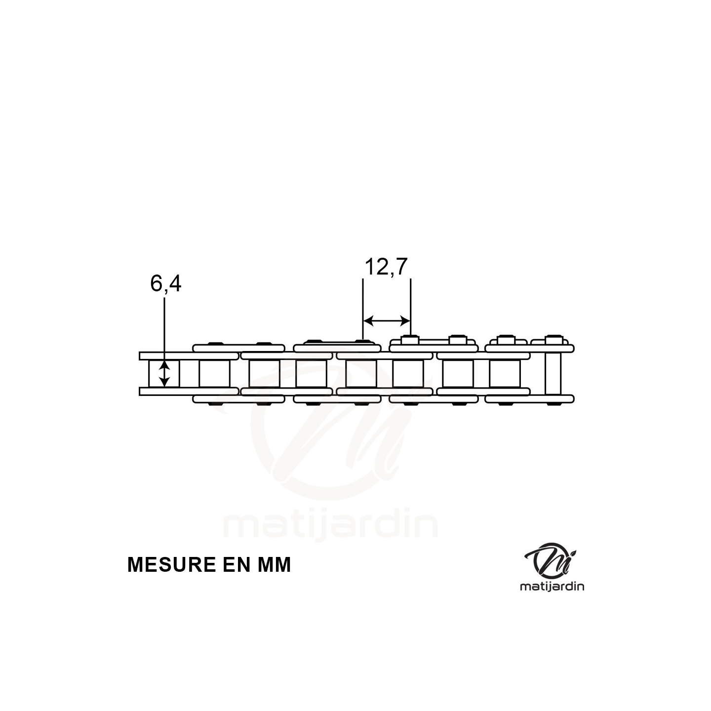 Chaîne transmission type C41 Longueur 3 m 12,7 x 6,4 mm