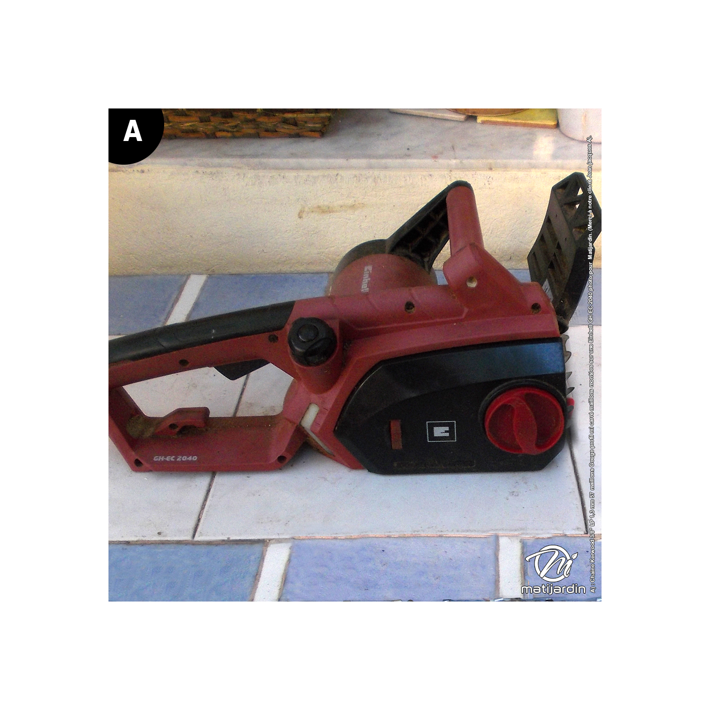 A) : Chaîne Kerwood 3/8" LP 1,3 mm 57 maillons Gouge profil mi carré maillons montées sur une Einhell GH-EC 2040 photo pour Matijardin. (Merci à notre client Jean jacques A).