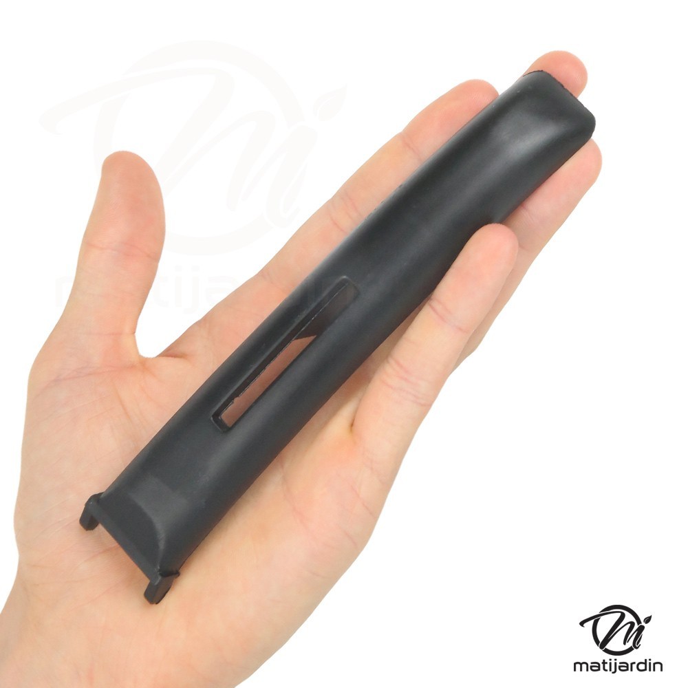 Cette poignée d'accélération est tenue par la main droite. La gâchette d'accélération et le levier d'arrêt viennent se loger à l'intérieur.