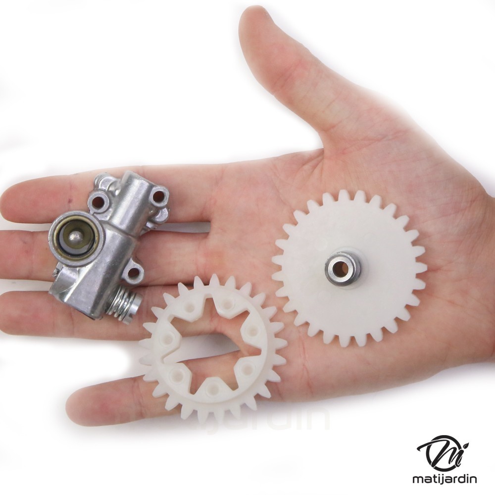 Pompe à huile et pignon pour tronçonneuse Stihl modèles 042, 048.