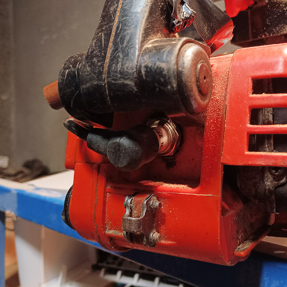 - Connectez le câble d'allumage, maintenant équipé du connecteur antiparasite, à la bougie d'allumage de l'équipement.