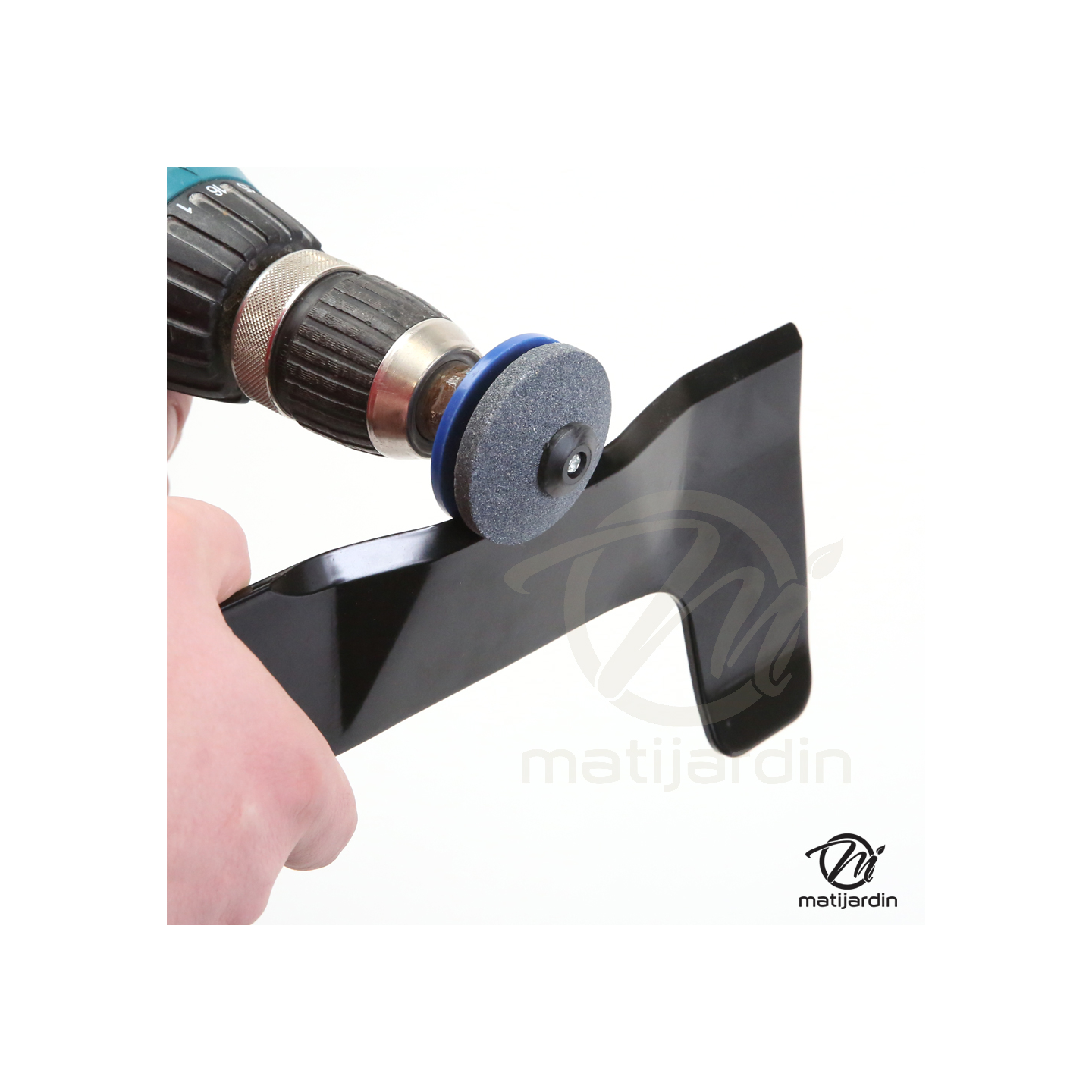 Convient à la majorité des lames de tondeuse à gazon, qu’elles soient droites ou légèrement courbées. S’adapte à toutes les perceuses et visseuses classiques.