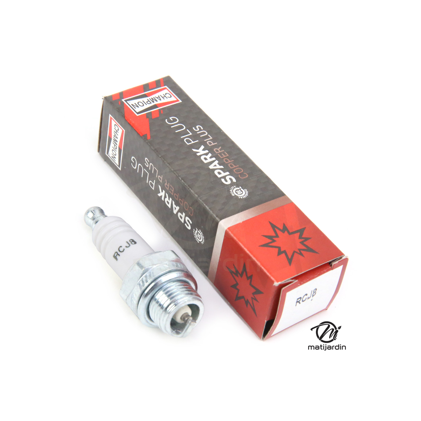 Bougie d'allumage Champion pour tondeuses et tronçonneuses.