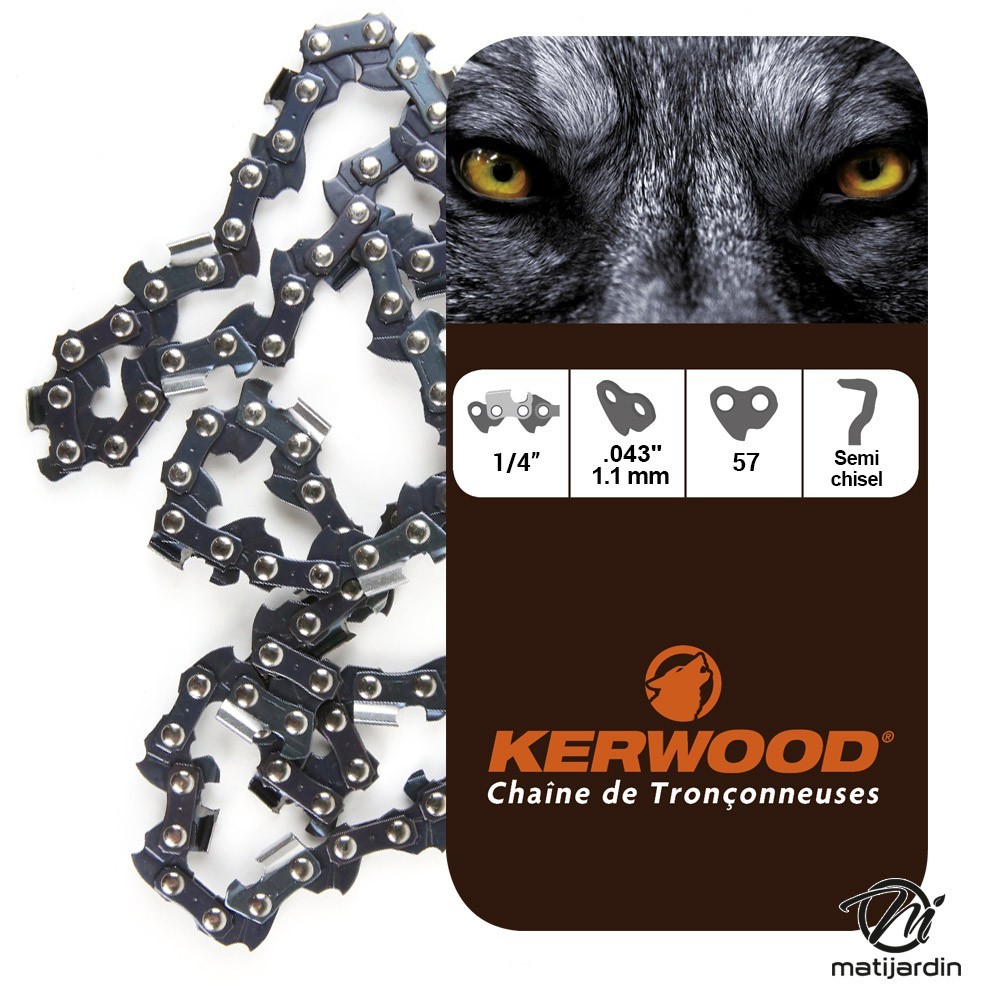 Chaîne Kerwood pour tronçonneuse 1/4" 1,1 mm 57 maillons. Gouge profil demi carré