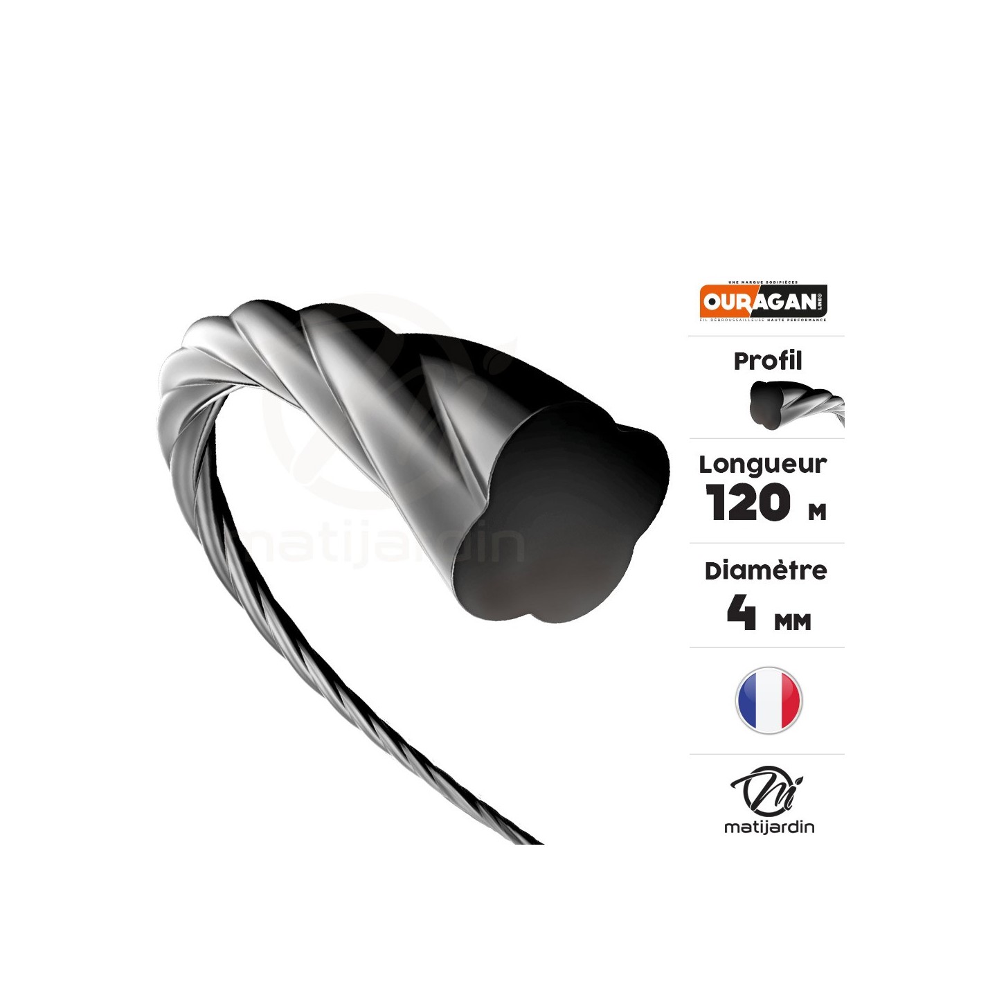 Fil débroussailleuse Ouragan 4 mm x 120 m Spirale Bobine