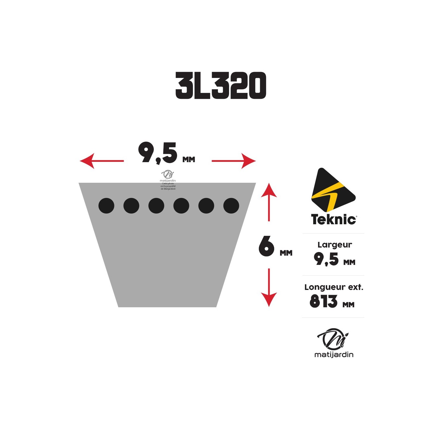 Courroie tondeuse 3L320 Teknic Kevlar Trapézoïdale 9,5 mm x 813 mm