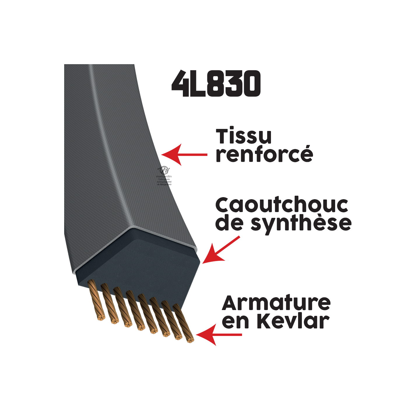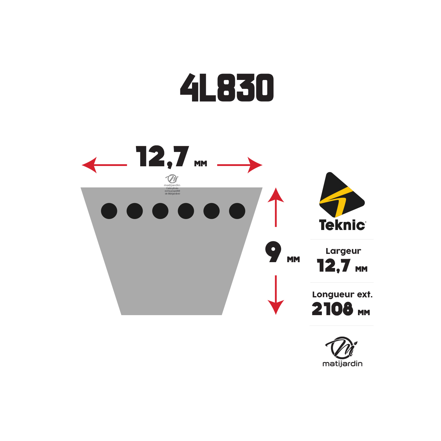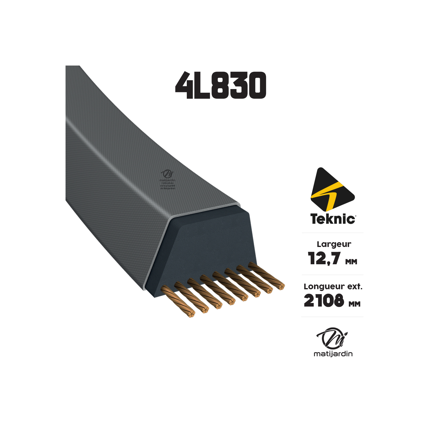 Courroie tondeuse 4L830 Teknic Kevlar Trapézoïdale 12,7 mm x 2108 mm