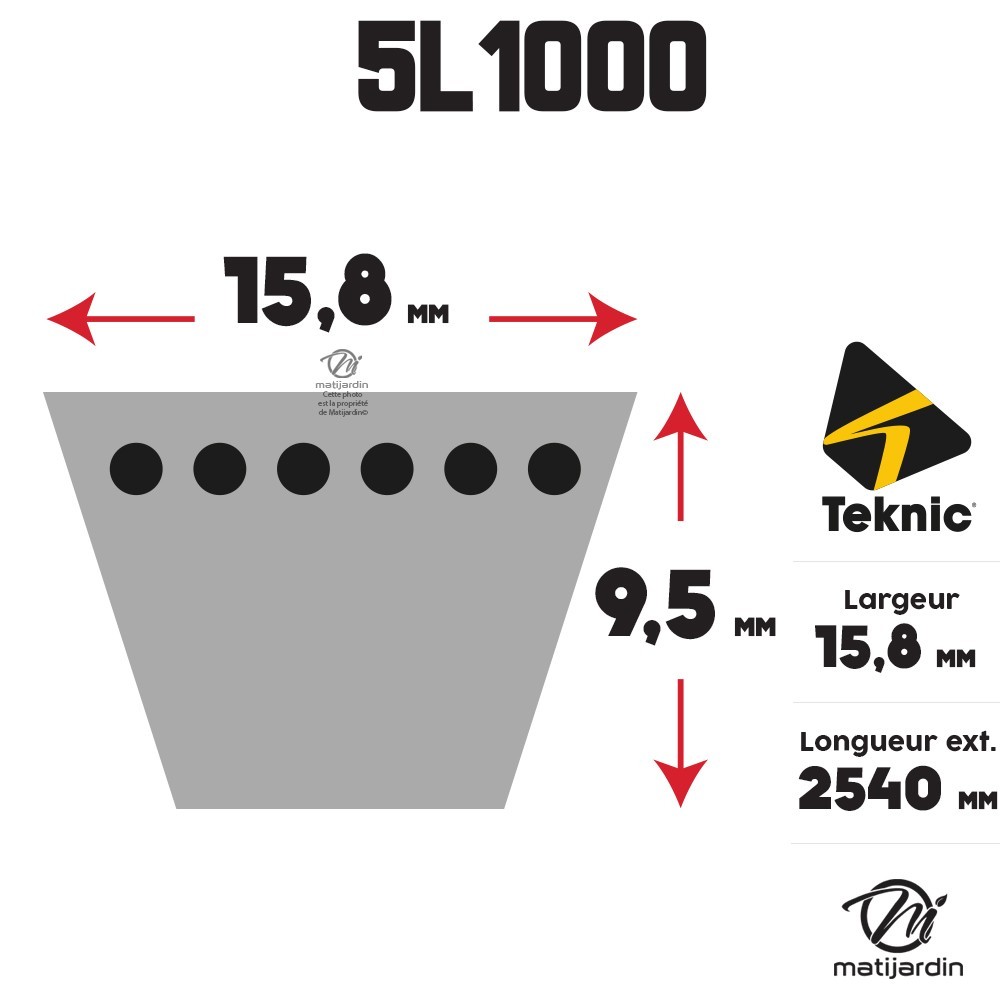 Courroie tondeuse Teknic 5L100 Kevlar Trapézoïdale - 15,8 mm x 2540 mm