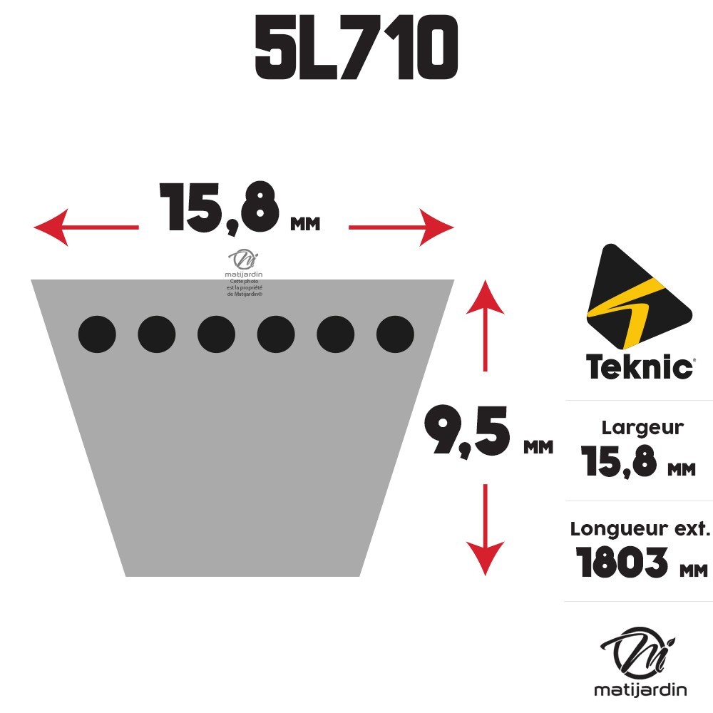 Courroie tondeuse 5L710 Teknic Kevlar Trapézoïdale - 15,8 mm x 1803 mm