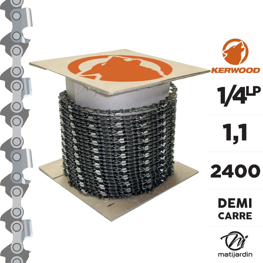 Chaîne Kerwood pour tronçonneuse 1/4" 1,1 mm. Rouleau 100 pieds.