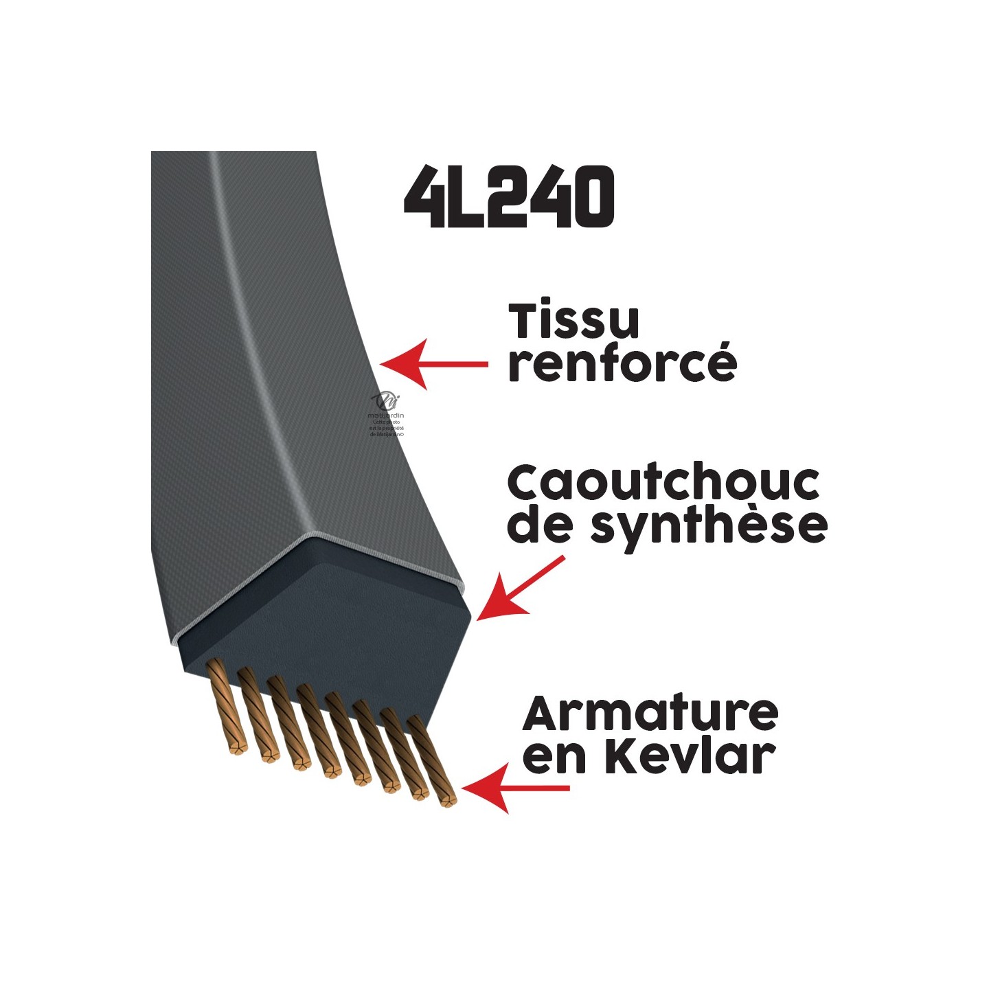 Courroie tondeuse 4L240 Teknic Kevlar Trapézoïdale - 12,7 mm x 610 mm