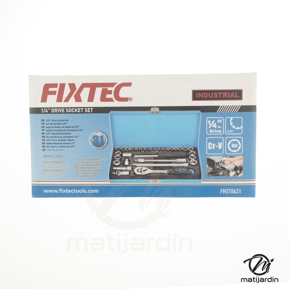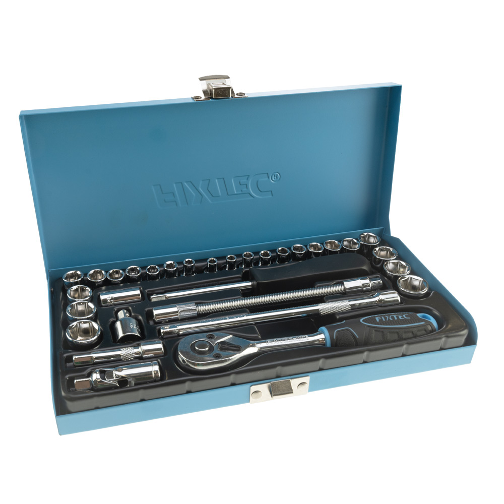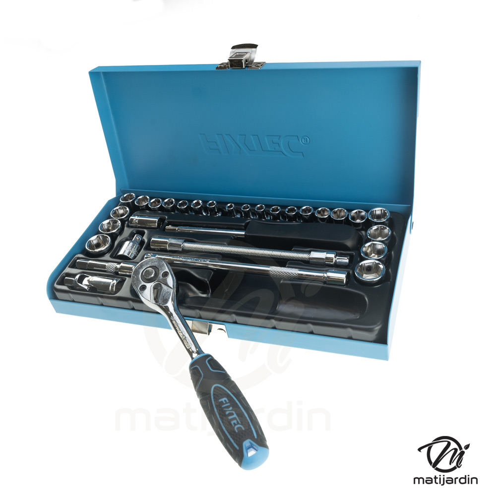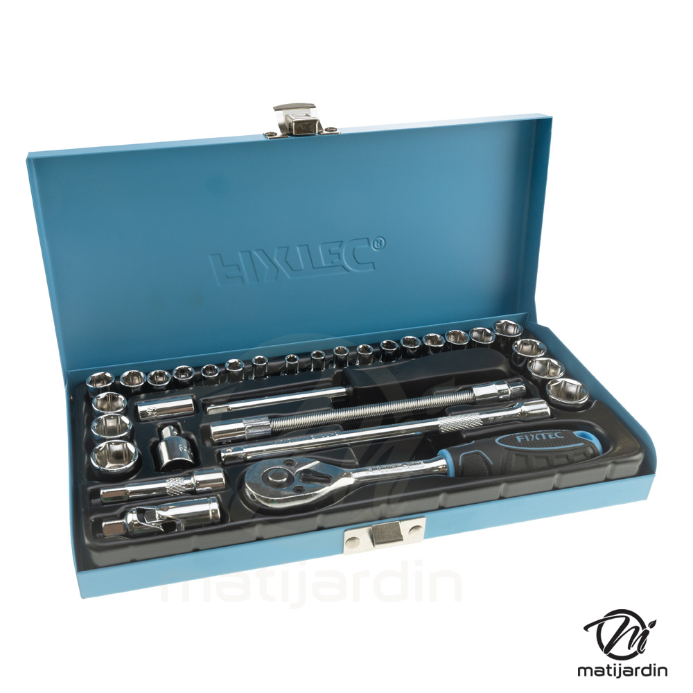 Jeu de douilles et de cliquets 6 pans - entraînement 1/4" - 31 pièces - Fixtec