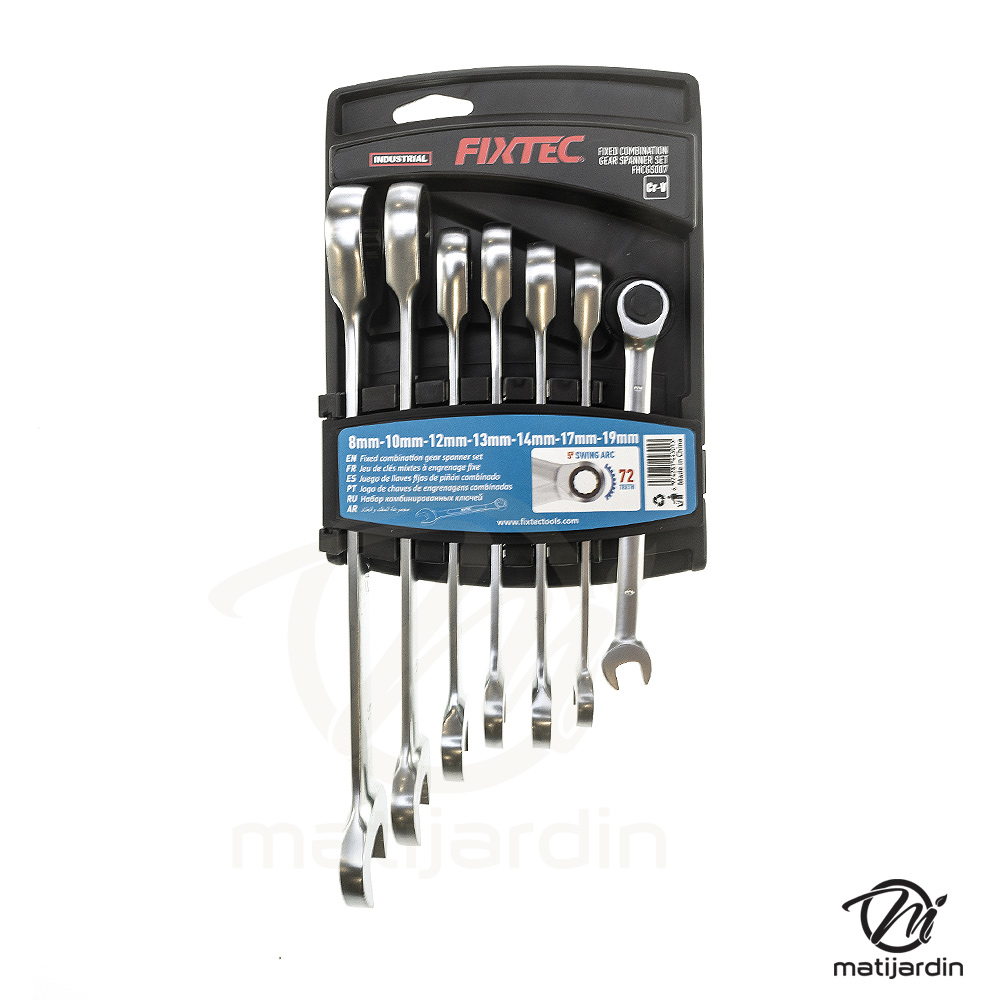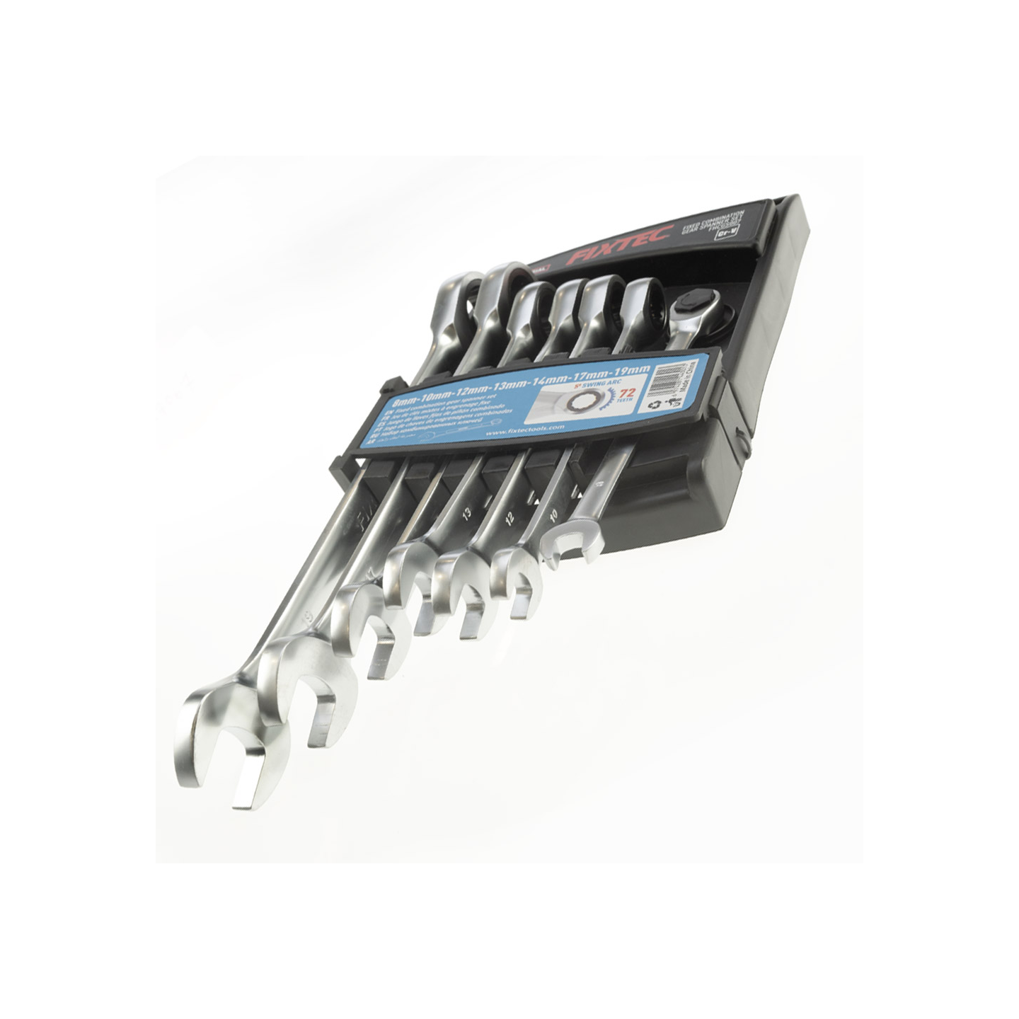 Jeu de clés à cliquet - 7 pièces avec têtes fixes - Fixtec