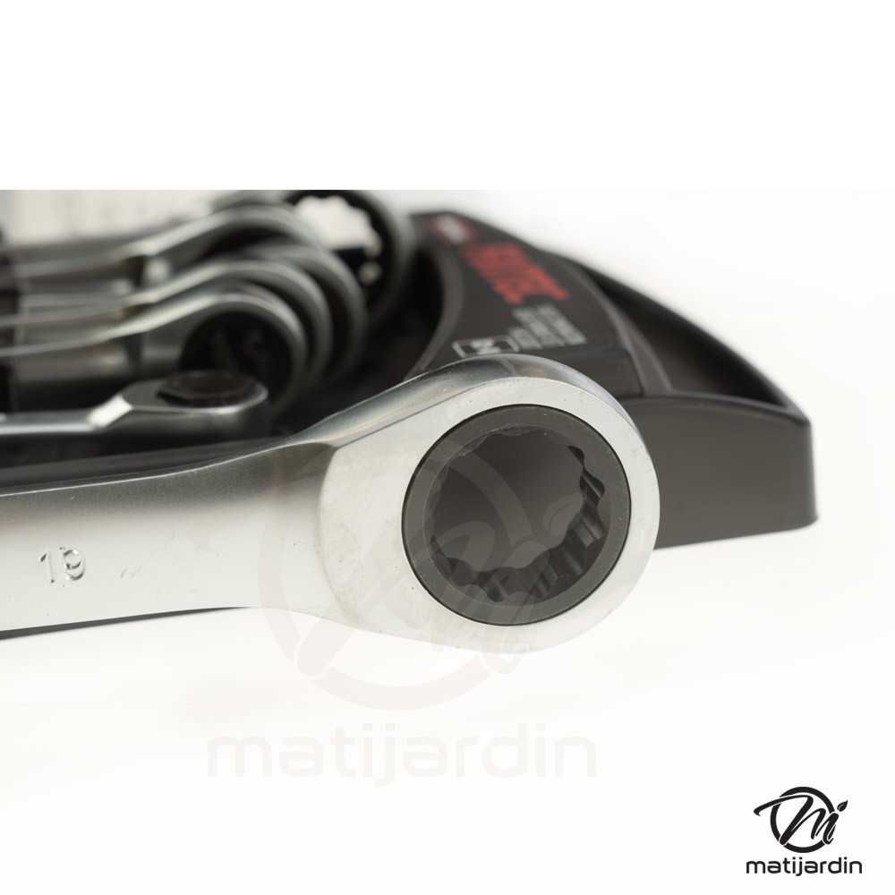 Cet ensemble de 7 clés à cliquet est spécialement conçu pour répondre aux besoins des bricoleurs exigeants et des professionnels. Fabriqué en acier chrome vanadium, il garantit robustesse et longévité. Le mécanisme de cliquet à 72 dents permet une rotation précise même dans les espaces les plus réduits, avec une amplitude de seulement 5°.