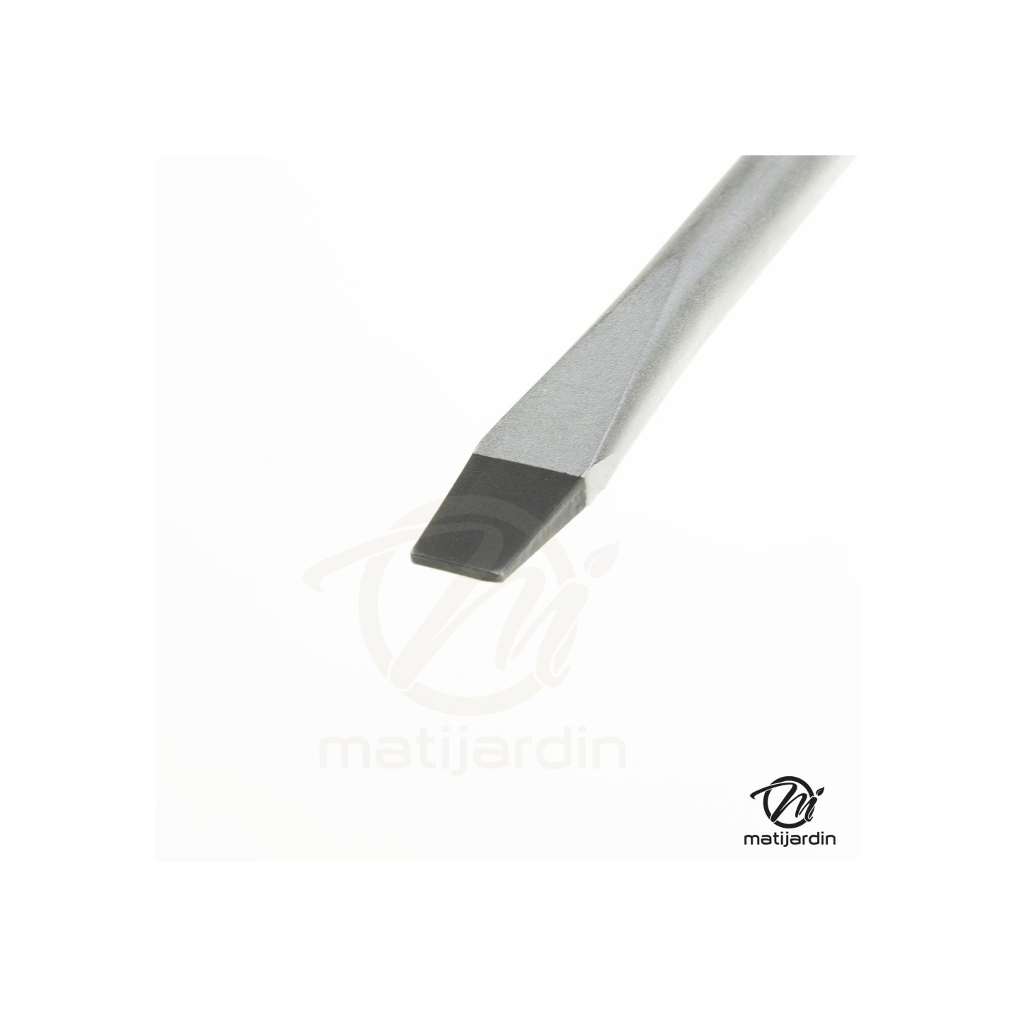 Son manche ergonomique, doté d’un revêtement antidérapant, offre une prise en main confortable et sécurisée, même lors d’utilisations prolongées. Avec une largeur de lame de 8 mm, il permet des interventions précises, idéal pour des travaux minutieux.